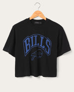 Own the spotlight with the Women's Bills Blitz Mock Neck Crop. This chic crop top redefines game day fashion, fusing modern flair with team spirit. Embrace the intensity of Bills football in a silhouette that's as bold as your loyalty. Elevate your style and showcase your pride with this fashion-forward statement piece.