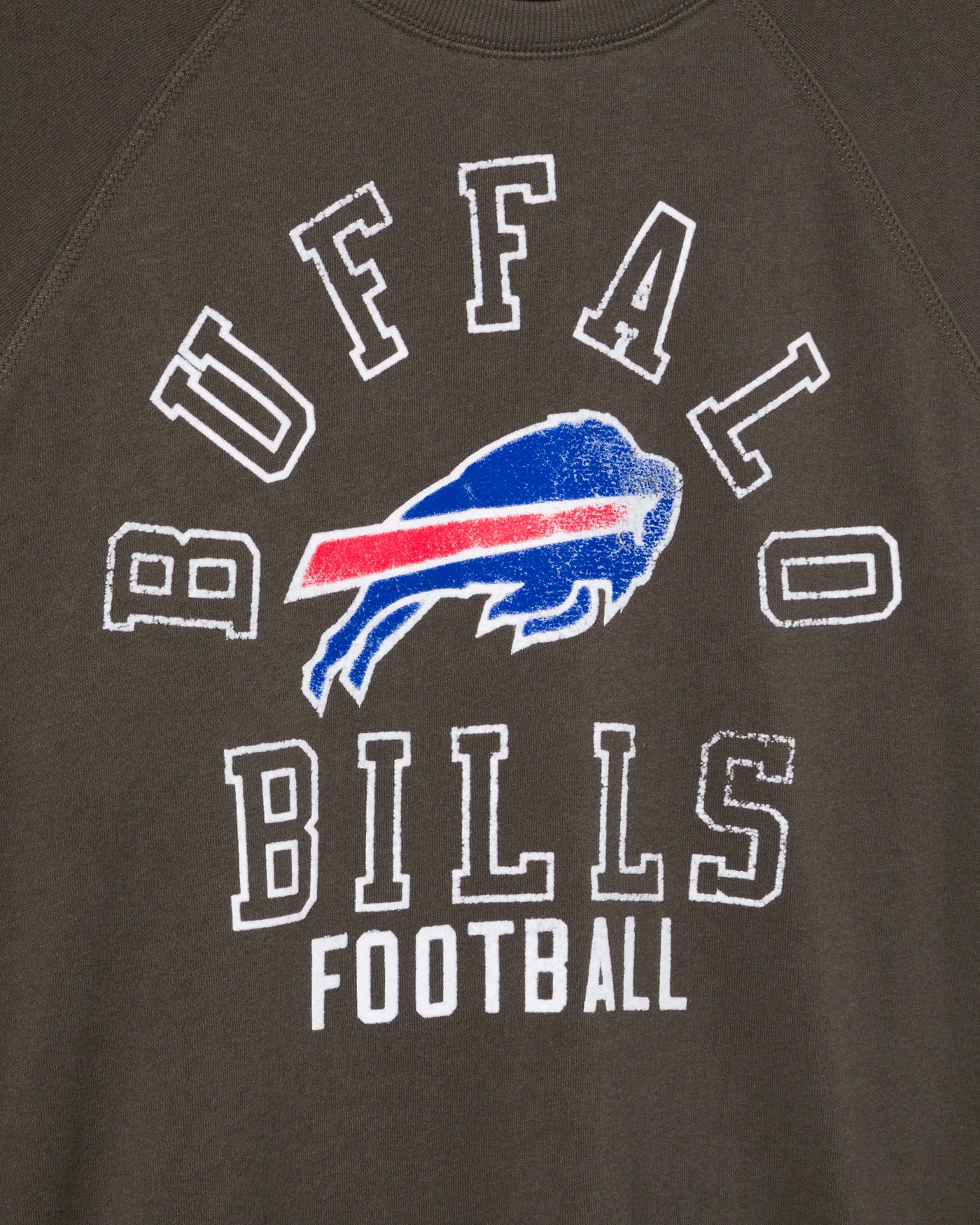 Elevate your game day look with our officially licensed Women's Bills Flocked Raglan Crew Fleece! This cozy fleece, an officially licensed product, features a stylish raglan sleeve design and soft flocked Bills graphics. Perfect for cooler weather, it's a comfortable and fashionable way to show your team spirit.