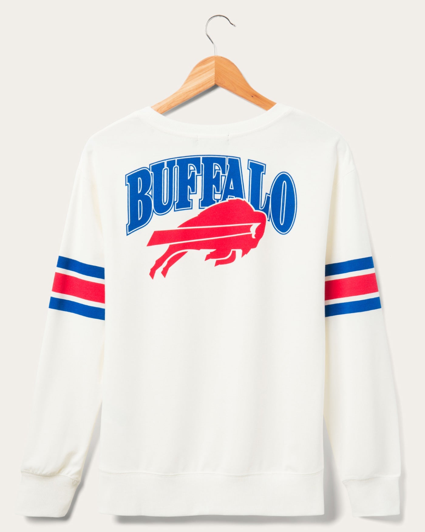 Are you ready for your new favorite crew? Well, we certainly believe so and that is why we have our Women’s Bills Kickoff Crew! Featuring two impressive retro graphics on the front and the back of the crew. This crew look like you just scored it after hours of digging at the thrift store. Grab yours and proudly represent your Bills!