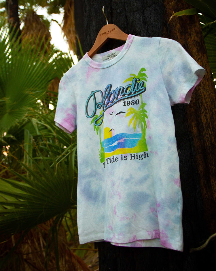 Live in world of eternal summer with our Blondie Tide is High Original Tee. Featured on a tie-dye as soft as a cloud with hints of bright pink throughout. Float away into the sunset with this classic beach iconography on our perfect fitting, super soft Original tee.