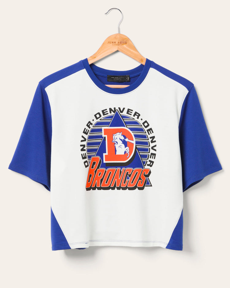 Show off your Broncos pride with this officially licensed Women's Color Block Crop Tee! Perfect for game day or casual wear, it features bold team colors and a trendy cropped fit. Made for comfort and style, this tee is a must-have for any true Broncos fan.
