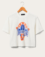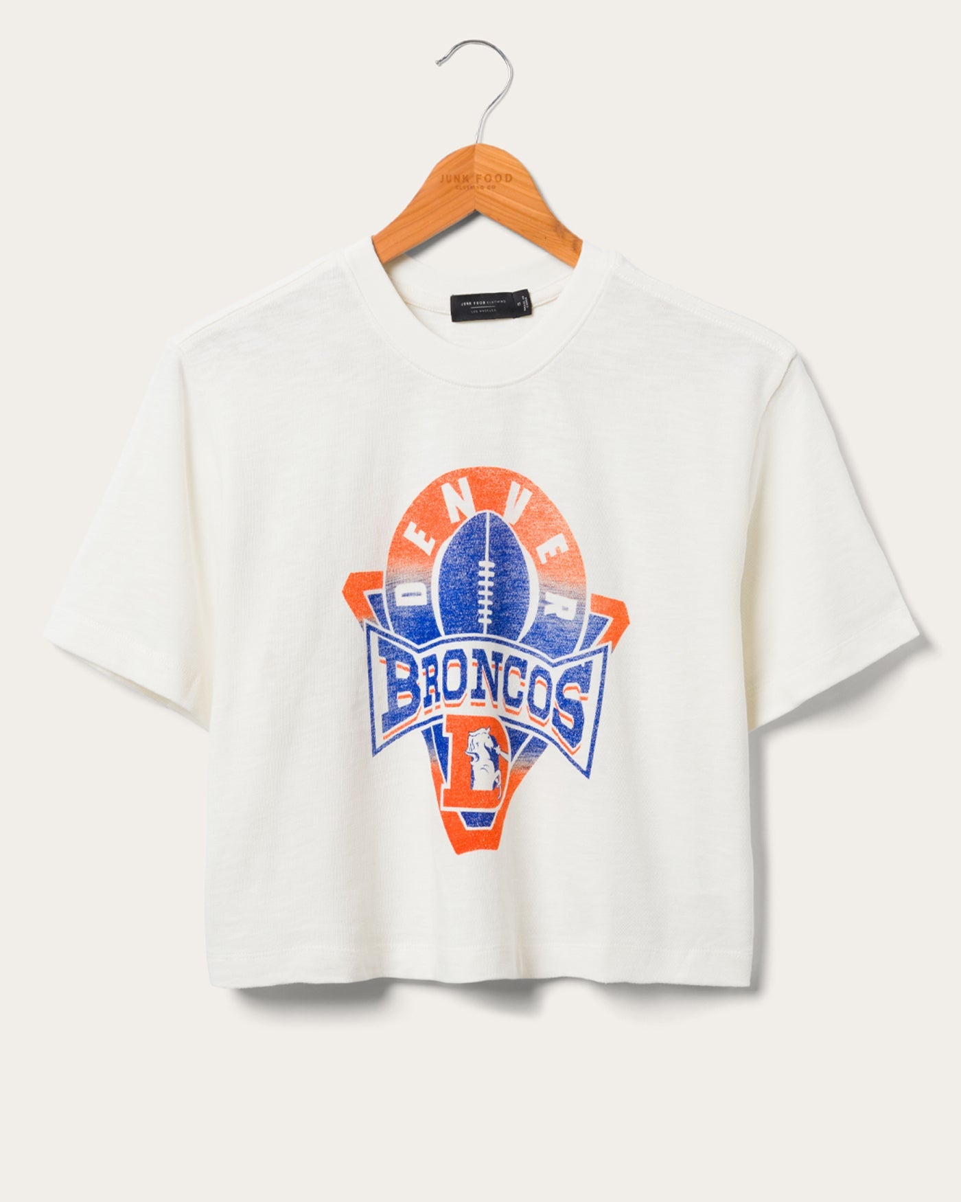 Step up your Broncos game-day look with the Women's Broncos Mock Neck Crop Tee! This NFL-licensed apparel combines Denver Broncos pride with a sleek mock neck design. With its flattering crop cut and sporty logo, you'll stand out in style while cheering for your team. Perfect for fashion-forward football fans!