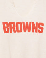 Get game day ready with our officially licensed Women's Browns Sunday Crop Thermal! This stylish, cropped thermal top features a flattering fit and bold Browns graphics. Made from soft, cozy fabric, it's perfect for cheering on your team in comfort and style. A must-have for every Browns fan!