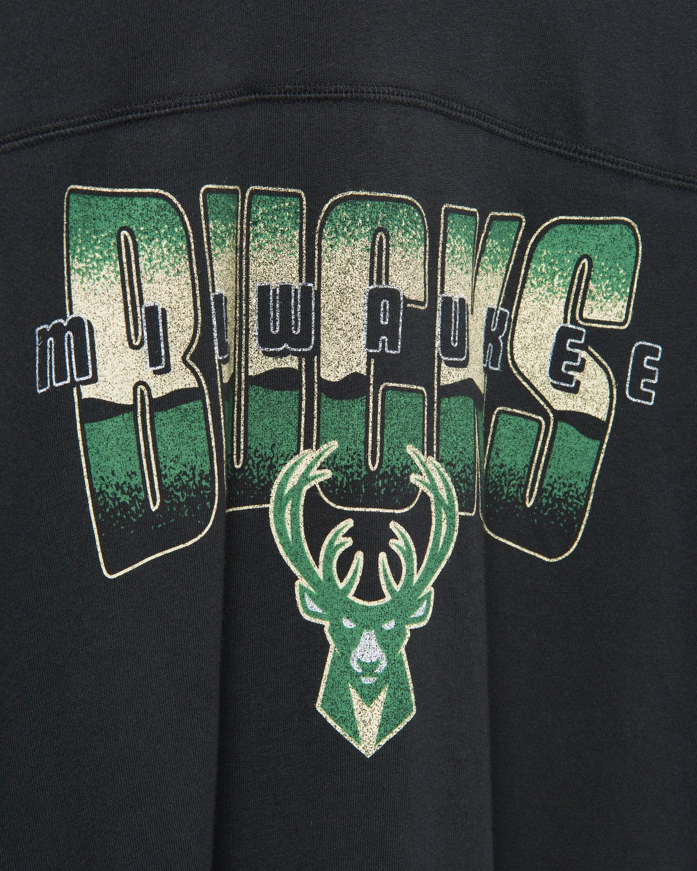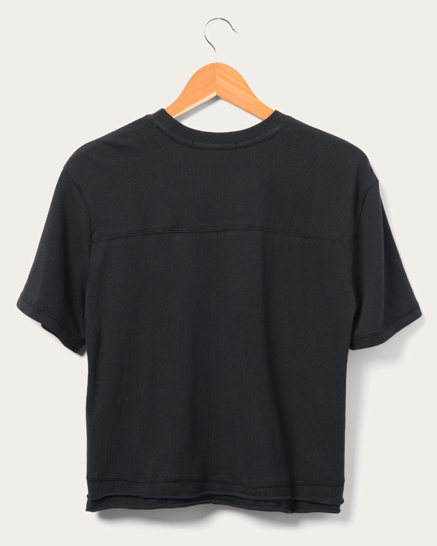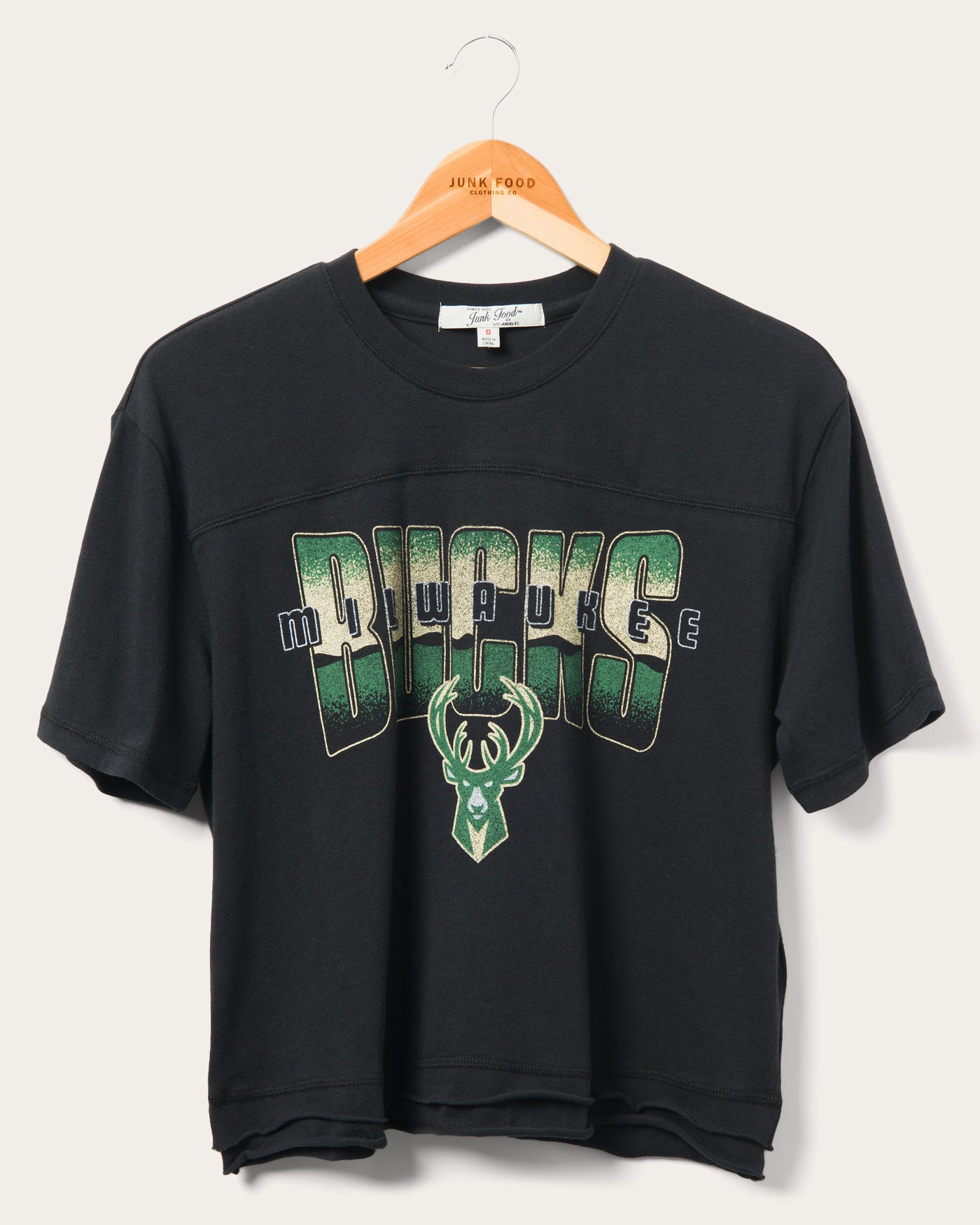 Ladies, we've got you covered for simple, yet cute throw-on tee for game-day! Our Women's Bucks Courtside Crop Tee in True Black sports an easy, boxy, cropped fit with raw cut hem & stitching details, and features a vintage inspired team logo. The perfect tee to match all bottoms & keep you feeling trendy while backing your team.