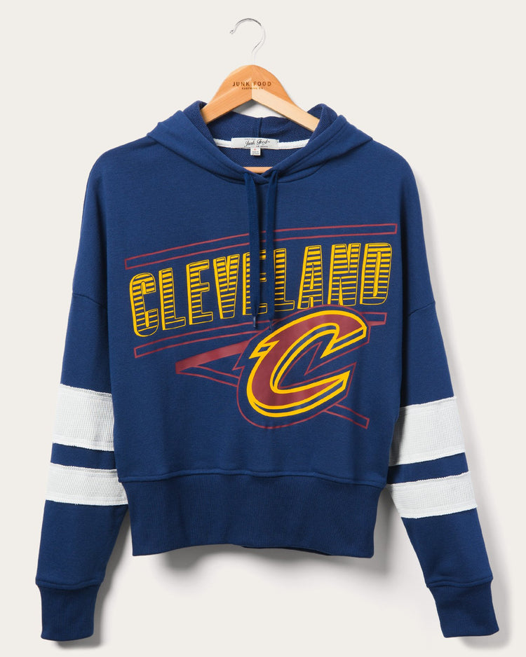 For the game days you're looking to feel stylish, but ultimately cozy. Our Womens' Cavaliers Overtime Striped Fleece Hoodie in True Navy has got you covered for an easy throw-on piece for home, bar or arena. Made in our super soft blended French Terry & sporting a boxy, cropped fit for a modern update to your hoodie collection.