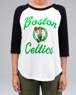 Go Celtics! Rep your team in our classic fit 3/4 sleeve raglan that has the perfect look-and-feel of your new favorite vintage sports tee with a distressed flock back hit.