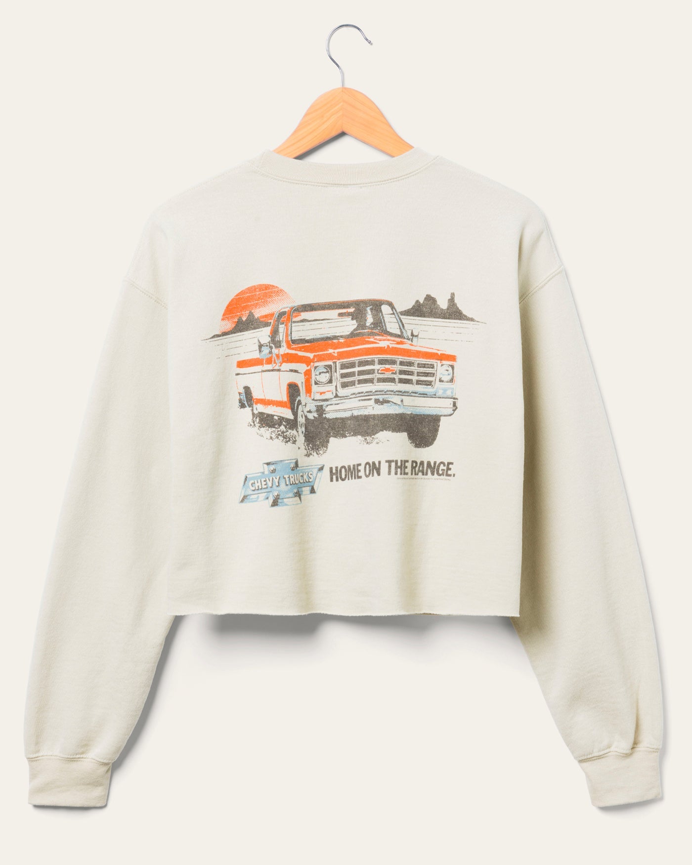 There’s no place like home in our Women's Chevy Trucks Home on the Range Cropped Flea Market Fleece. The flattering cropped fit and super-soft fabric will make this style your new go-to. Featuring a rustic back graphic and a vintage-inspired Chevy graphic on the left chest, this fleece belongs in your rotation.