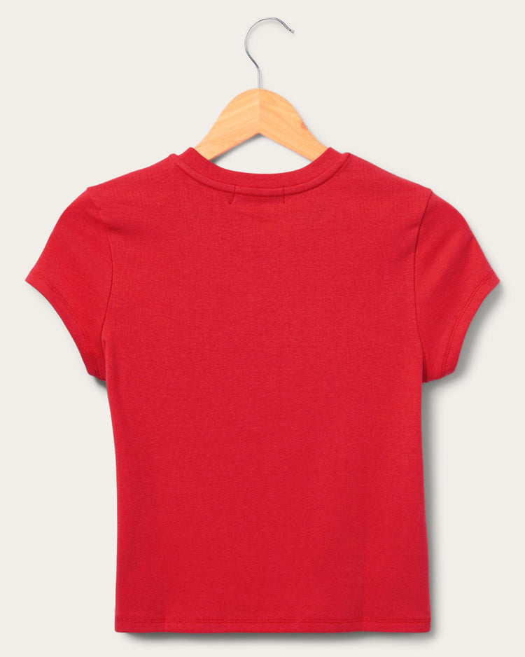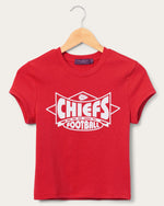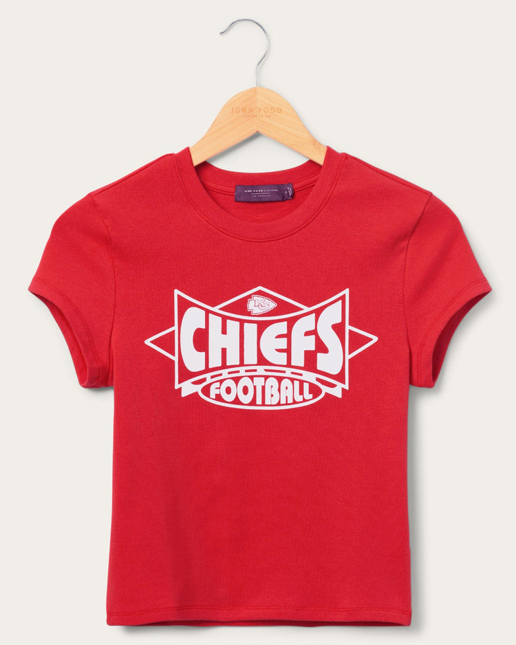 Elevate your wardrobe with the Women's Chiefs Baby Tee. Crafted from soft, breathable fabric, this fitted tee features a flattering cut and a stylish Chiefs logo. Officially licensed, it’s perfect for game day or casual outings, combining comfort and team pride effortlessly. Available in a range of sizes for the perfect fit.