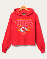 Ready for your new favorite hoodie? Well, check out our Women’s Chiefs Endzone Hoodie. Featuring a fun take on a vintage inspired Chiefs logo on the front. This cozy and comfortable hoodie is all you need during this football season. Rep your teams colors today!
