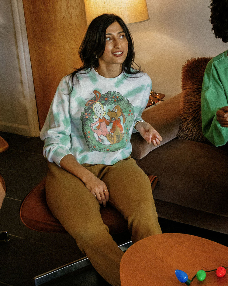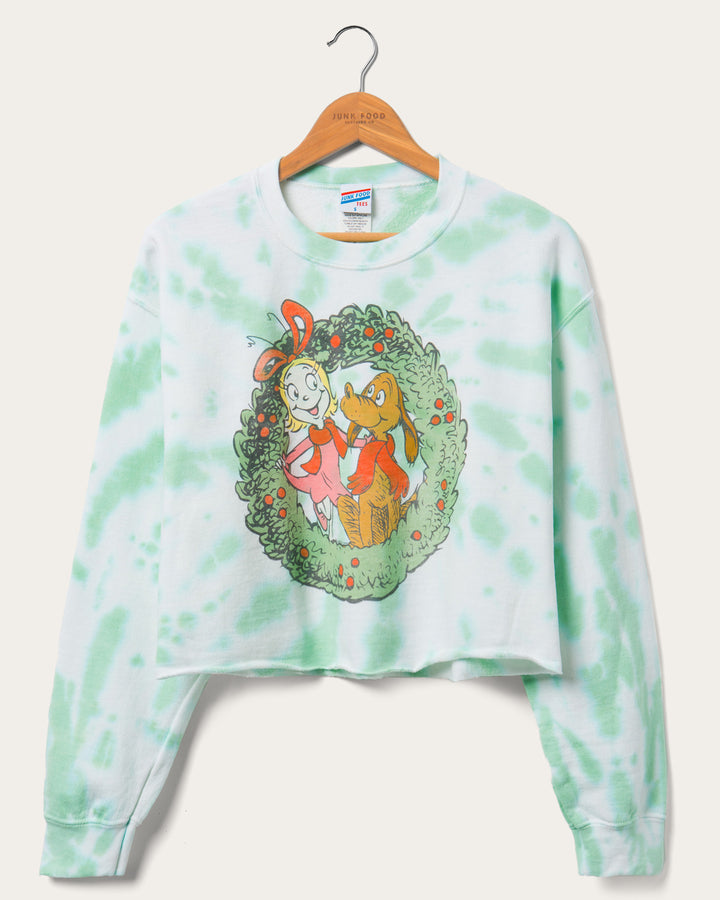 Celebrate the holidays with all your favorite characters in our Women's Cindy and Max Cropped Flea Market Fleece! Made out of 50% super soft cotton and 50% polyester for a relaxed oversized cropped fit. Featuring a festive Cindy and Max graphic on the front of the fleece!