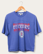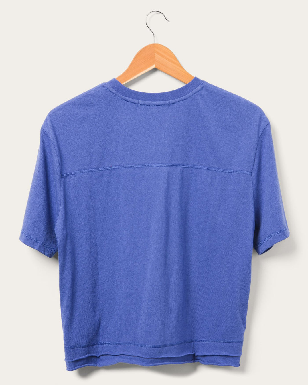 Ladies, we've got you covered for simple, yet cute throw-on tee for game-day! Our Women's Courtside Crop Tee in LIberty sports an easy, boxy, cropped fit with raw cut hem & stitching details, and features a vintage inspired team logo. The perfect tee to match all bottoms & keep you feeling trendy while backing your team.