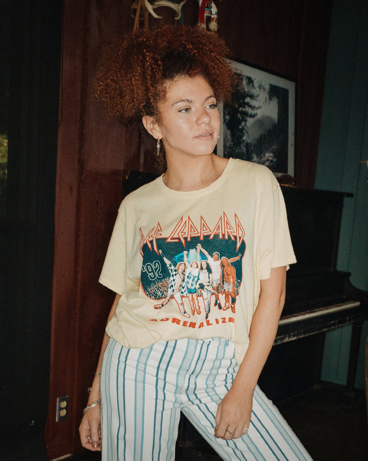 Elevate your style with our Women's Def Leppard '92 Vintage Tee. A tribute to the iconic band's epic 1992 tour, this shirt channels the spirit of rock 'n' roll. With classic design and a nod to Def Leppard's legendary sound, wear it proudly and let your fashion roar with retro rock vibes.