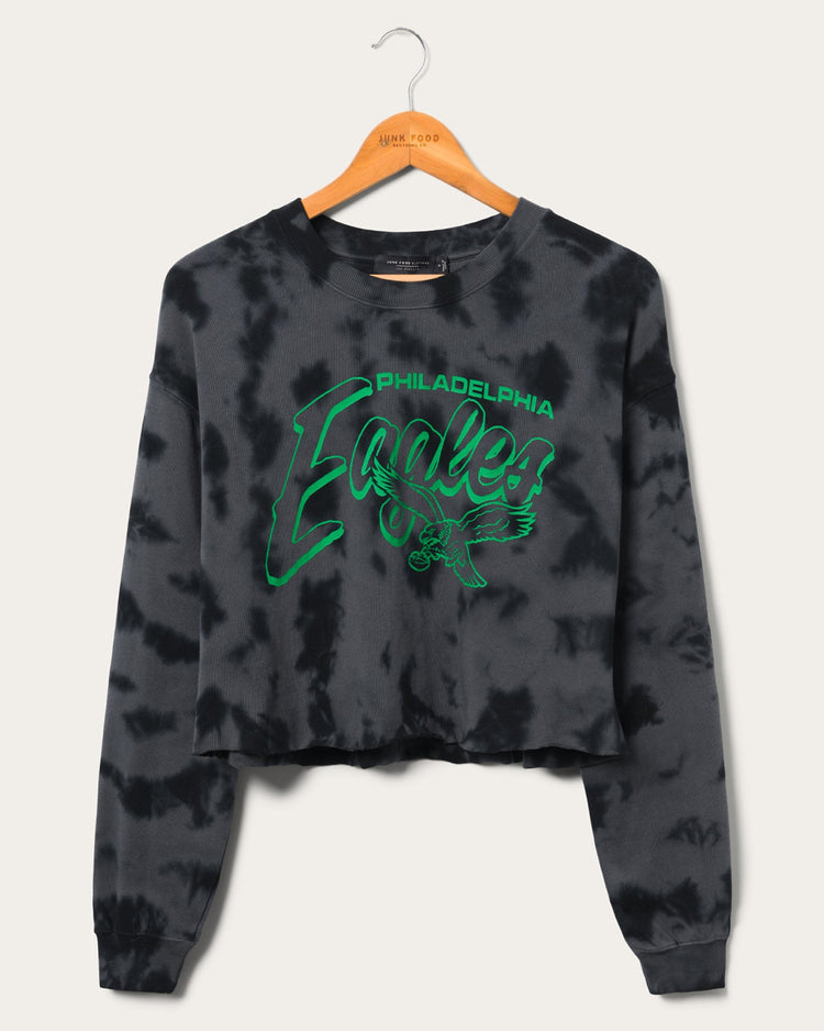 Elevate your game-day style with the Women's Eagles Long Sleeve Loose Knit Crop! This smart NFL-licensed apparel merges Philadelphia Eagles passion with trendy fashion. The loose knit crop design ensures a comfortable fit, while the team logo adds a touch of sporty elegance. Score fashion points while supporting your team!