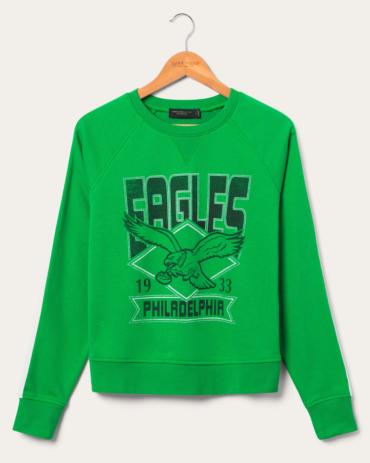 Calling all football fans… Check out our Women’s Eagles Overtime Crew! Featuring a retro inspired graphic on the front. This crew screams that it just came from the 80’s only it is made now! With a relaxed crewneck look and feel, this sweatshirt is perfect for those colder fall nights. Get yours now and show love to your favorite team!
