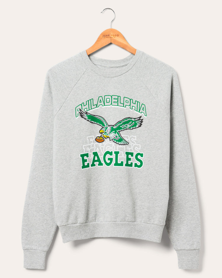 Embrace Eagles pride with the Women's Repeat Raglan Crew. This versatile piece seamlessly blends comfort and style, featuring a timeless design that celebrates the enduring spirit of Philadelphia football. Show off your team loyalty in a raglan crew that effortlessly elevates your fan wardrobe, perfect for game day or casual outings.