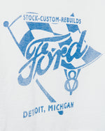 Are you a Ford girl? Well then, this is your tee! Our Women's Ford Flag Cropped Tee in White features the Ford logo and a racing flag in blue waving behind it. The Flea Market Crop Tee is made of 100% authentic heavy weight cotton and features a cut off hemline and distress wash.