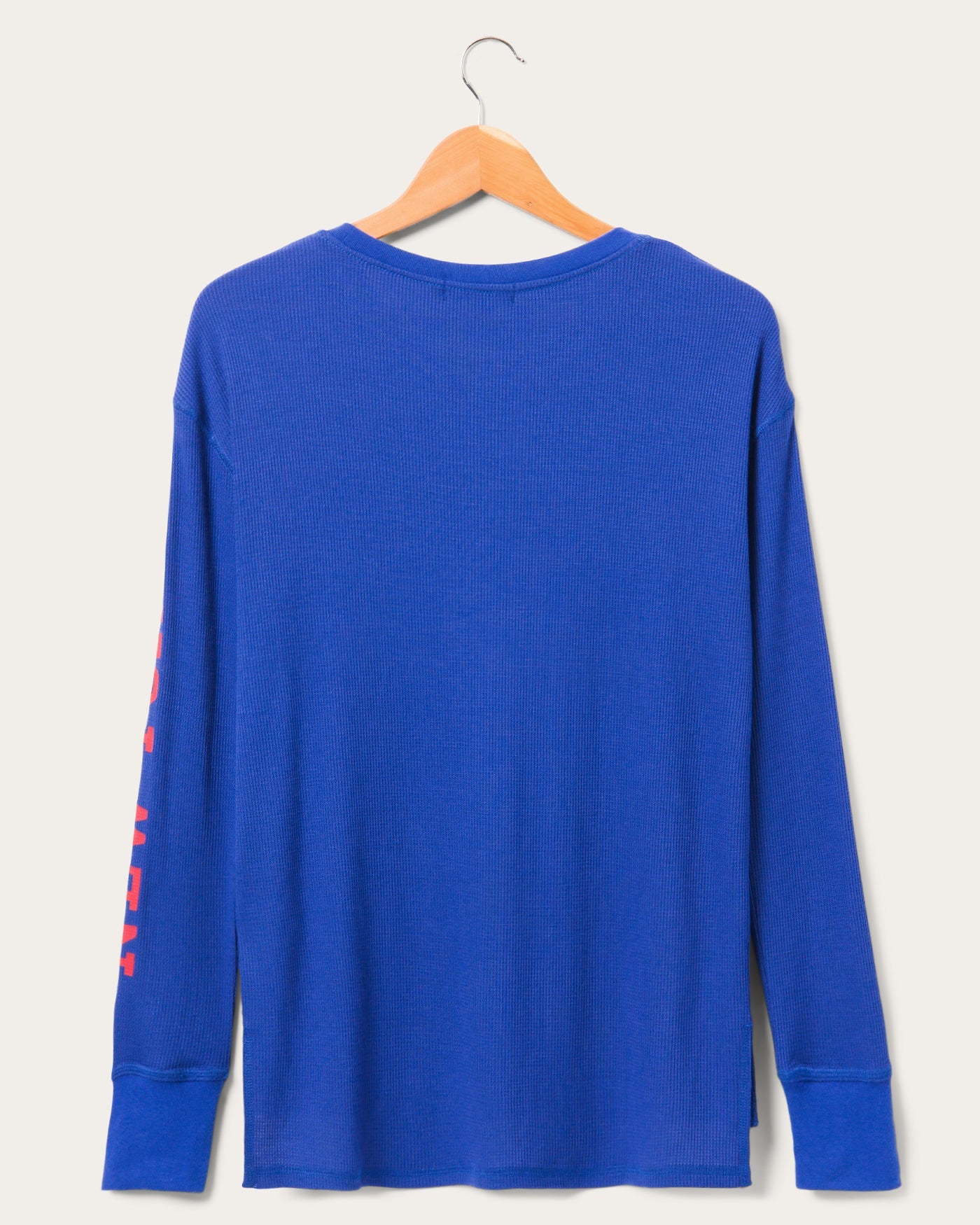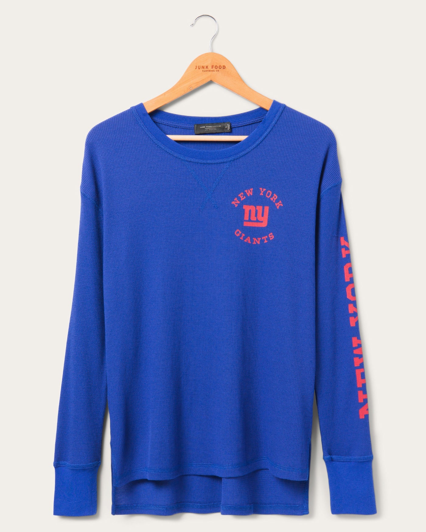 We have exactly what you need for those cold months with our Women’s Giants Timeout Thermal. Featuring a small graphic on the left chest and a New York text hit on the left sleeve. This thermal has comfort, warmth, and style all wrapped up into one shirt!