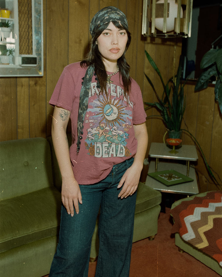 Step back into the '60s with our Women's Grateful Dead Los Angeles Vintage Tee. This tee captures the essence of the era, celebrating the band's iconic performances in LA. With its retro design and a flattering fit, it's perfect for music lovers and vintage enthusiasts alike. Relive the magic of the Dead in style!