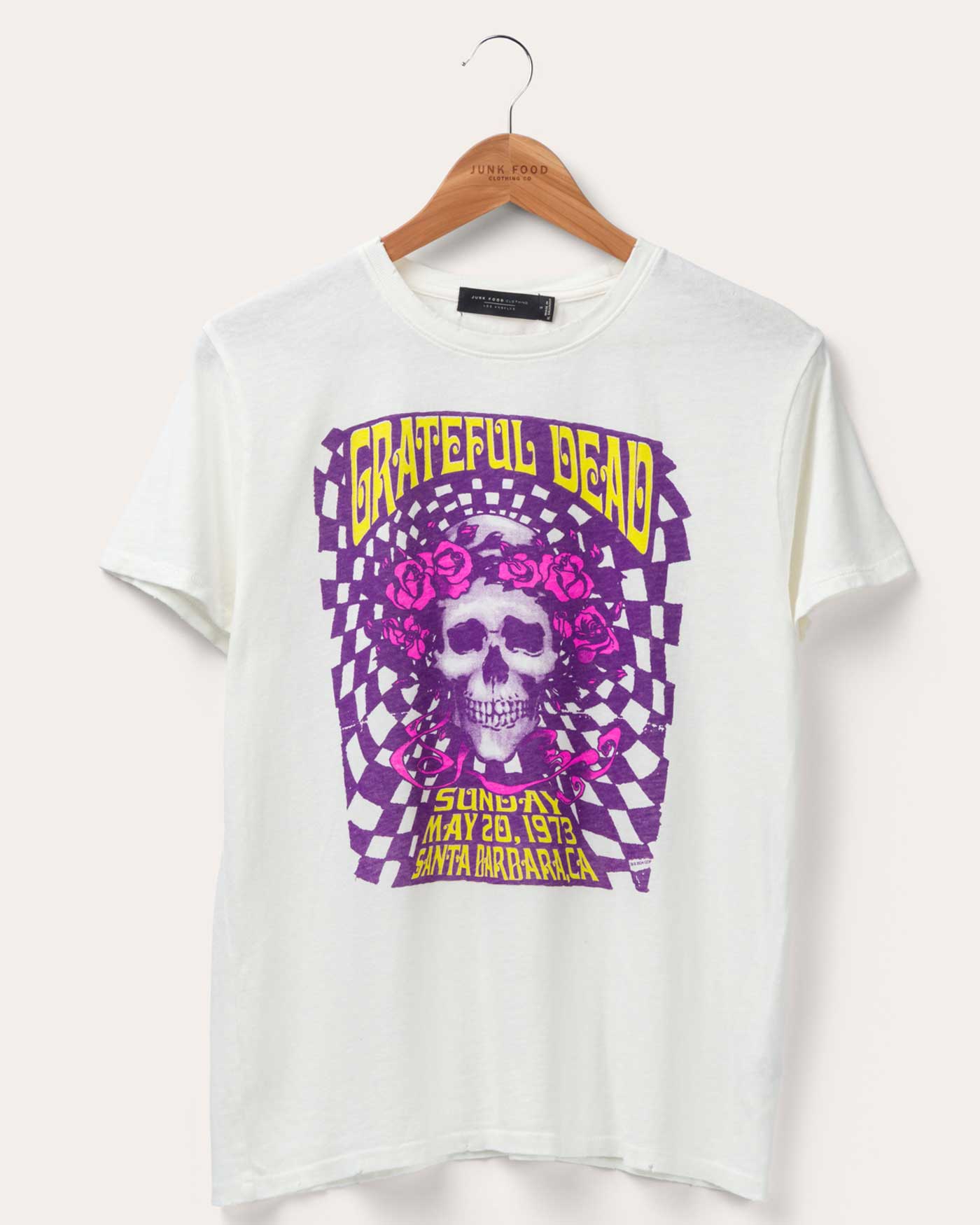 Dive into the psychedelic mystique with our Women's Grateful Dead Santa Barbara Vintage Tee. Capturing the essence of the legendary Santa Barbara show, this tee blends feminine style with Deadhead spirit. Adorned with the iconic imagery & distressed details it's a must- have for music enthusiasts who crave a touch of retro flair in their wardrobe. Groove in style.