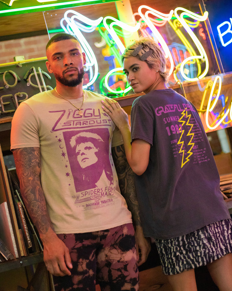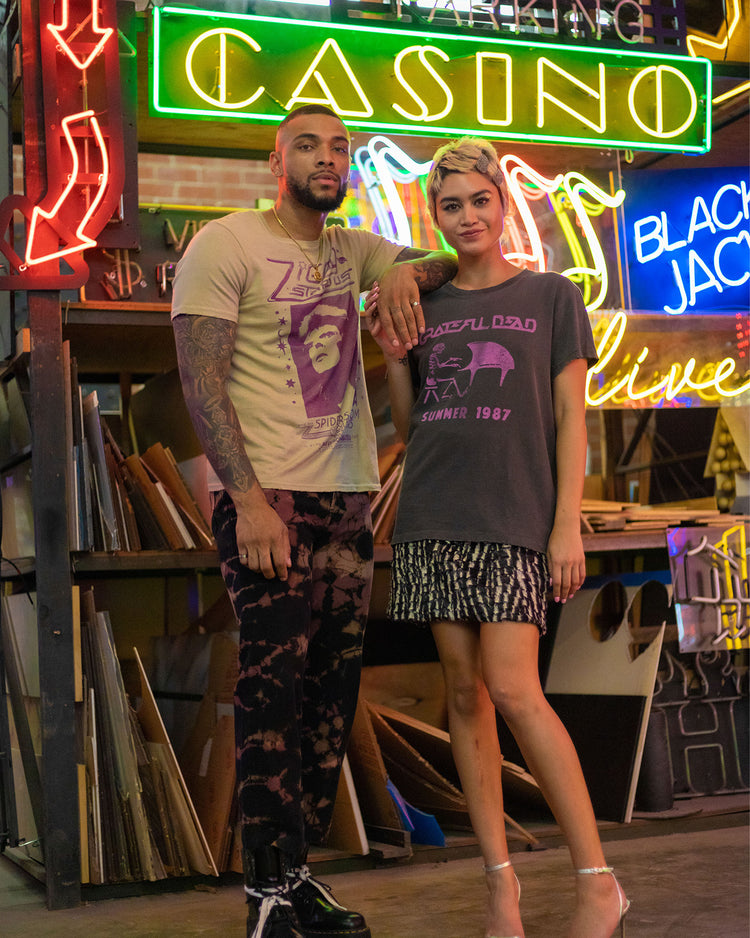 Get ready to jam in our brand new, super soft Women's Grateful Dead Summer Tour 1987 Vintage Tee! Featuring an amazing Grateful Dead graphic on the front and the tour dates on the back. Made with our signature 100% mid-weight loose knit cotton and given our classic vintage destruction treatment like grinding on the hem, neck, and sleeve. This tee is sure to set you apart from all the other Deadheads!