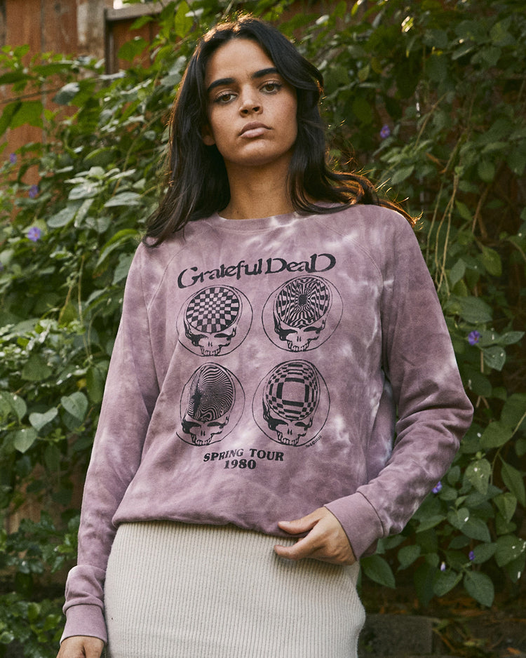 This Women's Grateful Dead Tonal Tie Dye Raglan French Terry Crew Pullover is our classic, original pullover body with a fresh new dye technique to keep you looking good all day long. Get cozy in the 100% cotton French terry fabrication and rep this forever classic band at the same time.