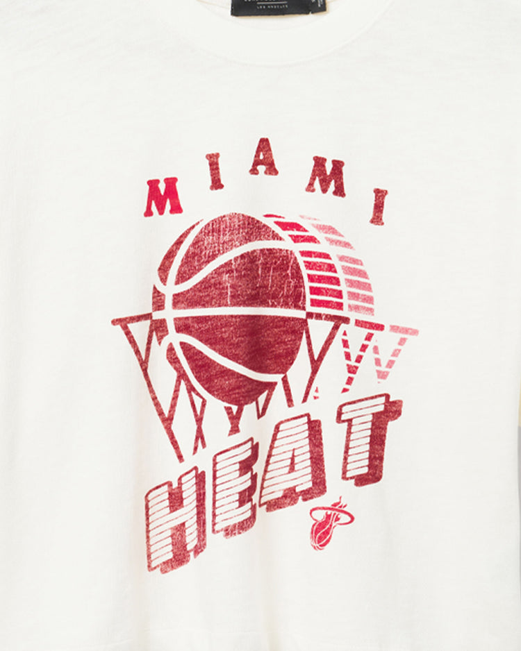 Unleash your court-side charm with the Women's Heat Short Sleeve Crop Mock Neck Tee! This crop tee showcases your love for the Miami Heat in a sleek mock neck design. With a flattering crop cut and sporty logo, you'll command attention and score big on style while cheering for your team!