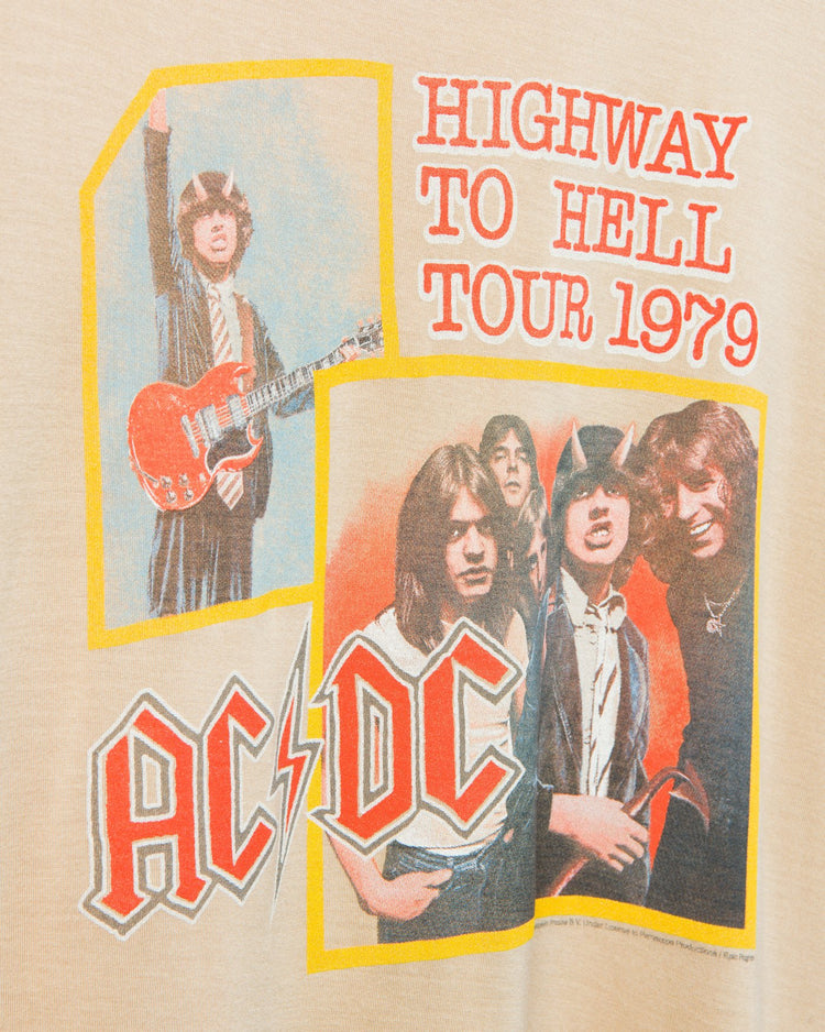 Go back in time to 1979, when "Highway to Hell" became the famous anthem of the Aussie rockets in our Highway to Hell AC/DC Vintage Tissue Tee. The soft, distressed graphic is featured on our newest tee silhouette replicating the worn out feel that only times can make with buttery-soft & "barely there" micro model fabric.