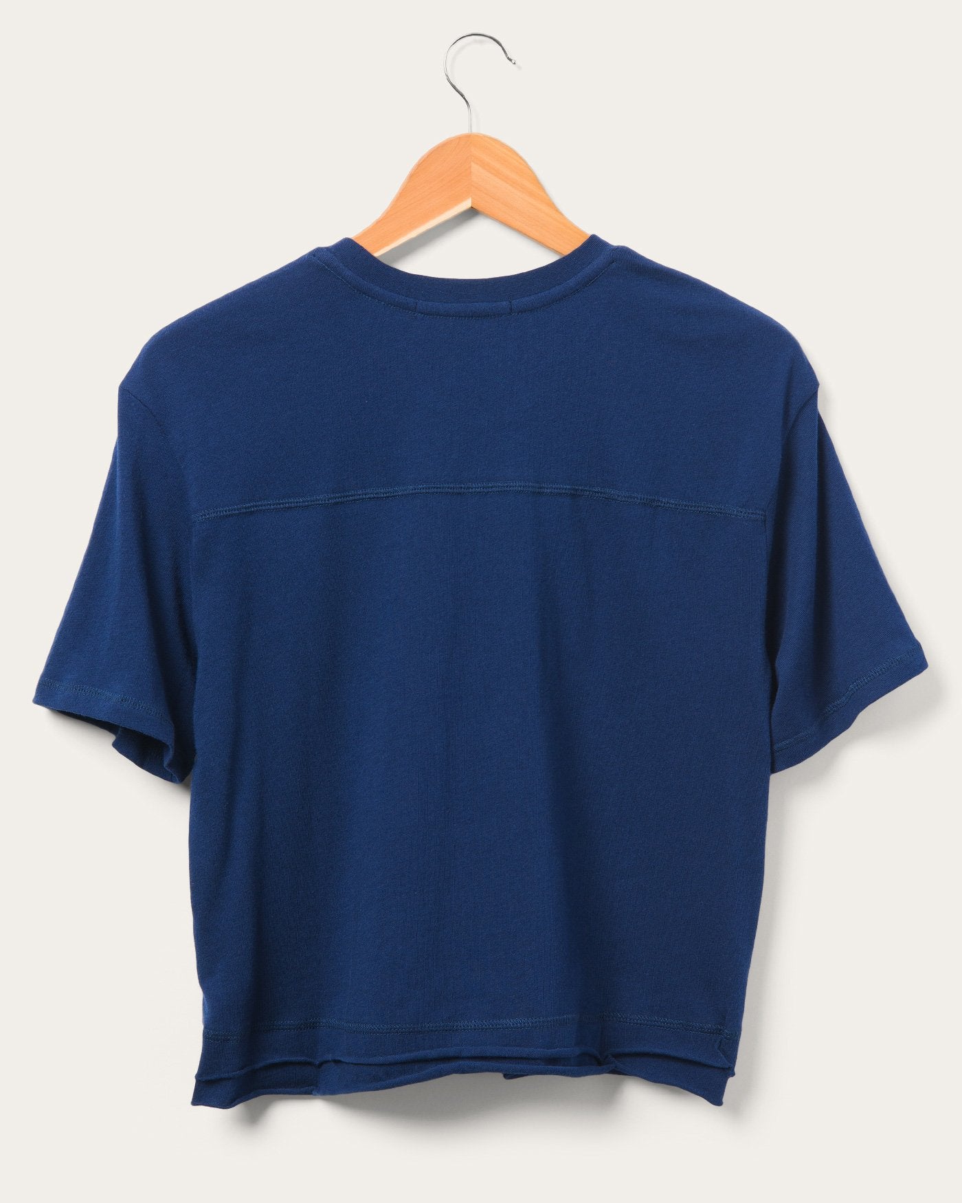 Ladies, we've got you covered for simple, yet cute throw-on tee for game-day! Our Women's Jazz Courtside Crop Tee in True Navy sports an easy, boxy, cropped fit with raw cut hem & stitching details, and features a vintage inspired team logo. The perfect tee to match all bottoms & keep you feeling trendy while backing your team.