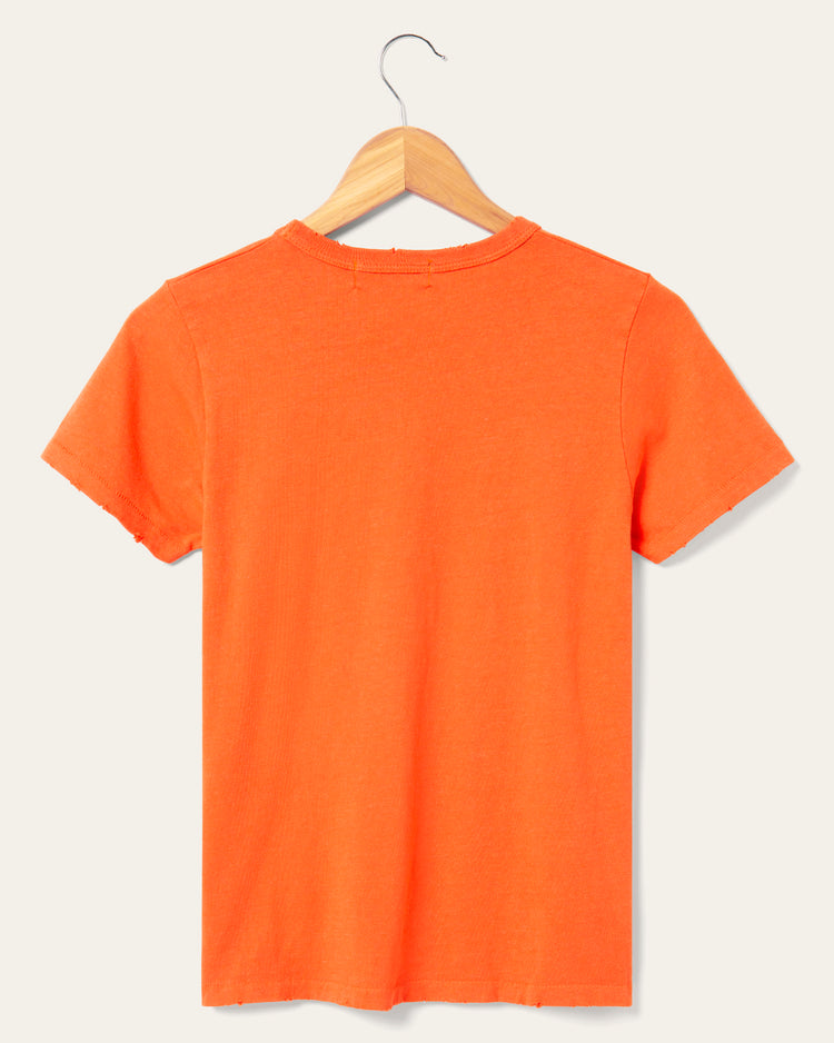 Radiate positivity in our Women's "Woman Kind" Original Tee. Featuring a vintage-inspired Woman Kind heart embroidery on a bold red-orange tee. This soft, lived-in tee is all about effortless style with a distressed finish. Delicate embroidered details add texture and depth, making this piece as unique as the message it carries. Perfectly relaxed and endlessly empowering—because kindness never goes out of fashion.
