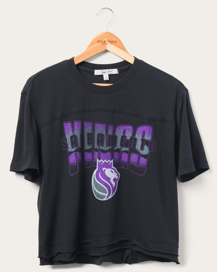 Ladies, we've got you covered for simple, yet cute throw-on tee for game-day! Our Women's Kings Courtside Crop Tee in True Black sports an easy, boxy, cropped fit with raw cut hem & stitching details, and features a vintage inspired team logo. The perfect tee to match all bottoms & keep you feeling trendy while backing your team.