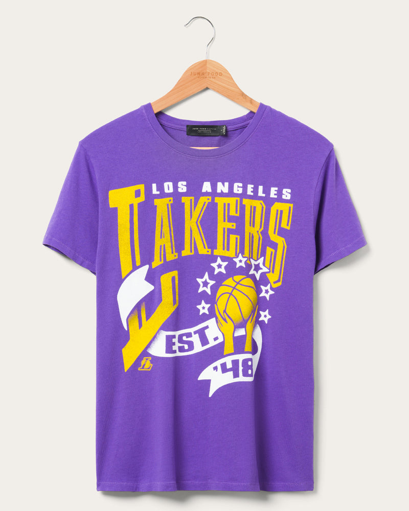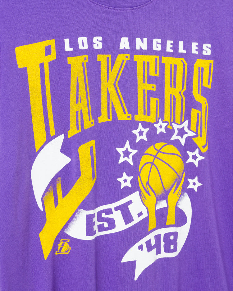 Celebrate Lakers greatness with our Women's Lakers Banner Vintage Tee! Featuring a timeless banner design and the iconic team logo, this tee exudes retro charm. Its soft fabric ensures all-day comfort, while the classic style lets you flaunt your Lakers pride in a fashionable way. Show your loyalty with every wear! Go Lakers!