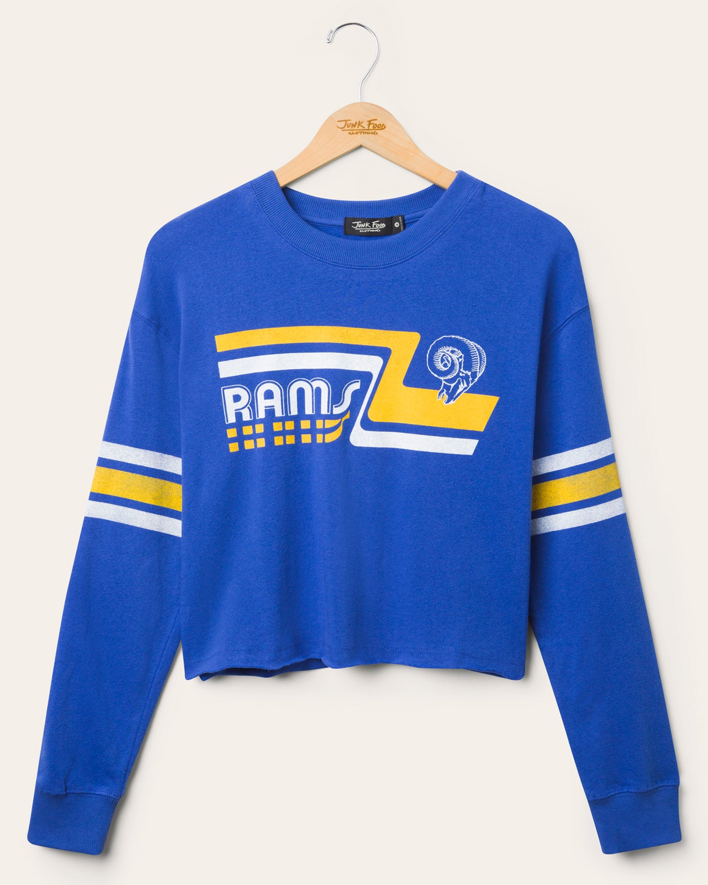 Throw it back in style with the Women's Los Angeles Rams Retro Crop Fleece. This cozy, cropped pullover features bold vintage graphics and super soft fleece for that worn in, game day feel. Perfect for fans who love classic Rams flair with a modern twist.