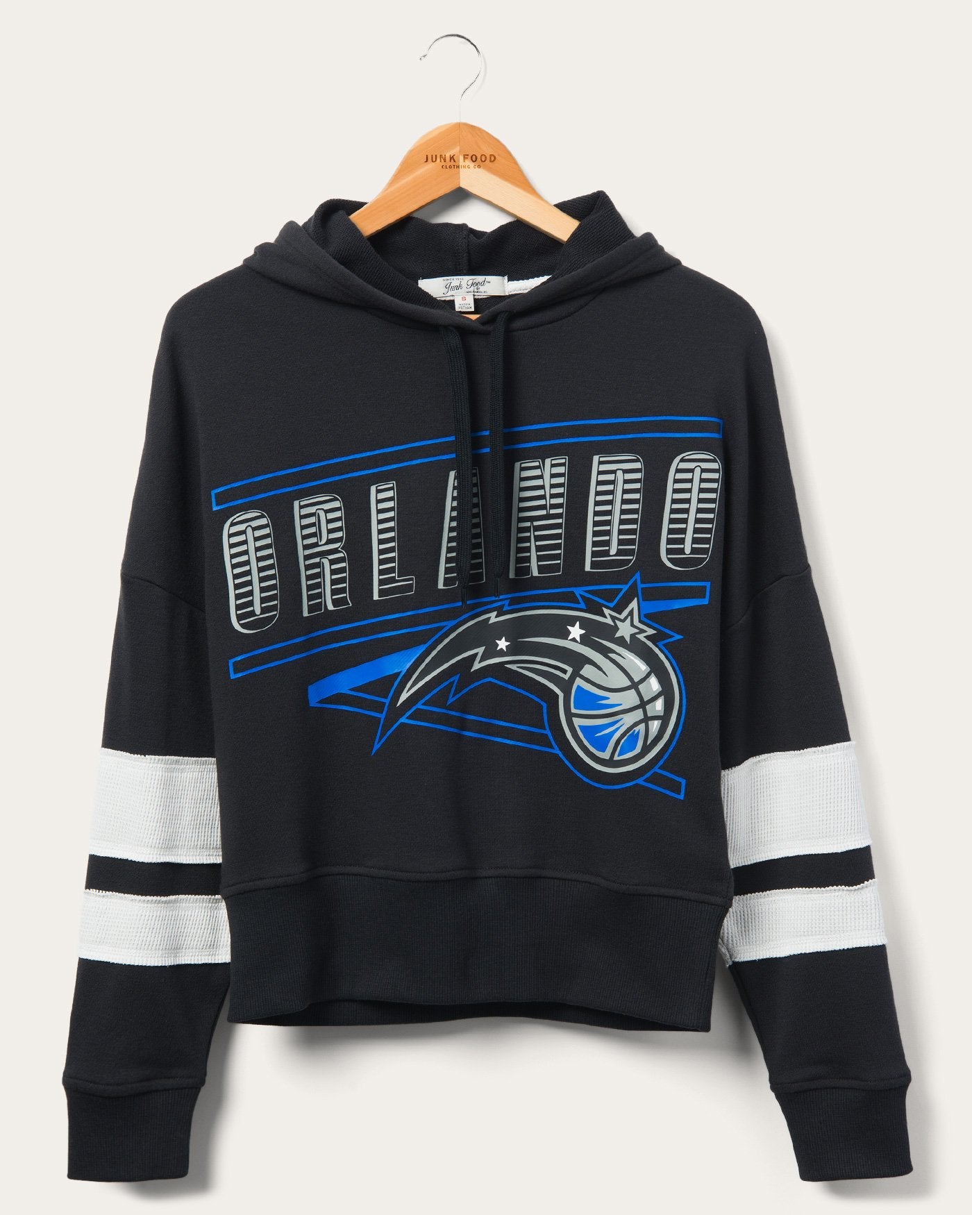 For the game days you're looking to feel stylish, but ultimately cozy. Our Women's Magic Overtime Striped Fleece Hoodie in True Black has got you covered for an easy throw-on piece for home, bar or arena. Made in our super soft blended French Terry & sporting a boxy, cropped fit for a modern update to your hoodie collection.
