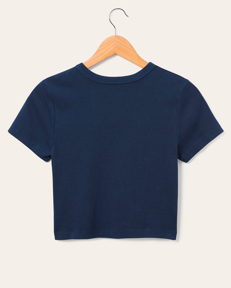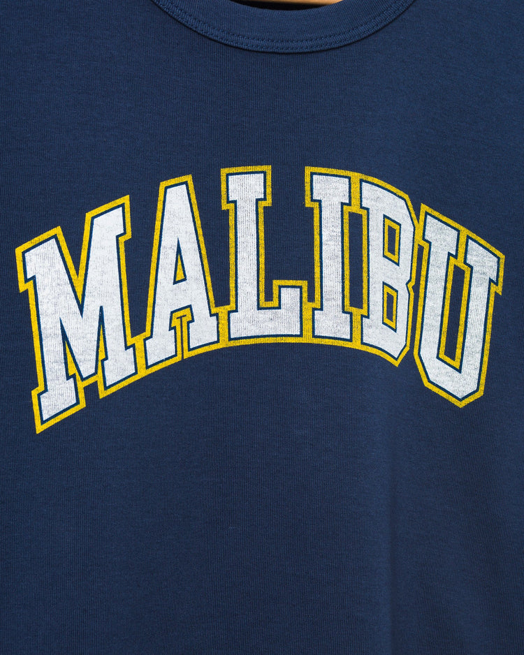 Embrace coastal cool with the Women's Malibu Baby Tee in classic navy. Crafted for all-day comfort, this cropped tee features bold collegiate lettering for a laid-back, beach-inspired vibe. Get ready for the ultimate sun-soaked look. Malibu dreams, here you come!