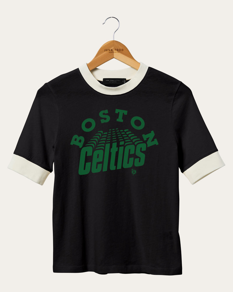 Lets go Celtics! Rep Beantown with our Women's NBA Slim Ringer Tee. Featuring a signature loose knit 100% cotton jersey. With a relaxed close fit, extended sleeve length, and a vintage graphic print across the center, this tee is perfect for any occasion.