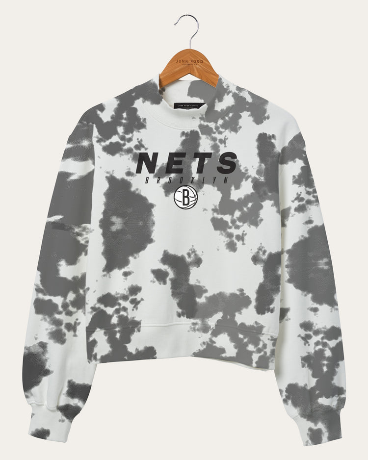 Check it out! We are bringing the classic tie dye style to the new age. Our NBA Tie Dye Mock Neck Long Sleeve is made of a blend of 80% heavy weight peached fleece cotton and 20% polyester, featuring a stylish tie dye treatment, the fine graphic printed logo featuring front and center on the chest, this cropped fit long sleeve is perfect for hanging out at home or a night out. Go Nets!
