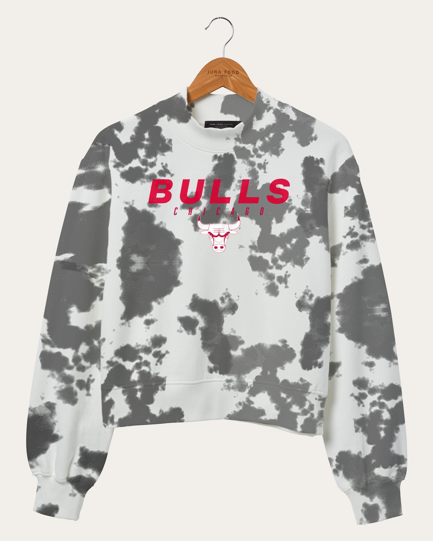 Check it out! We are bringing the classic tie dye style to the new age. Our NBA Tie Dye Mock Neck Long Sleeve is made of a blend of 80% heavy weight peached fleece cotton and 20% polyester, featuring a stylish tie dye treatment, the fine graphic printed logo featuring front and center on the chest, this cropped fit long sleeve is perfect for hanging out at home or a night out. Go Bulls!