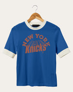 Lets go Knicks! Rep the Empire State with our Women's NBA Slim Ringer Tee. Featuring a signature loose knit 100% cotton jersey. With a relaxed close fit, extended sleeve length, and a vintage graphic print across the center, this tee is perfect for any occasion.