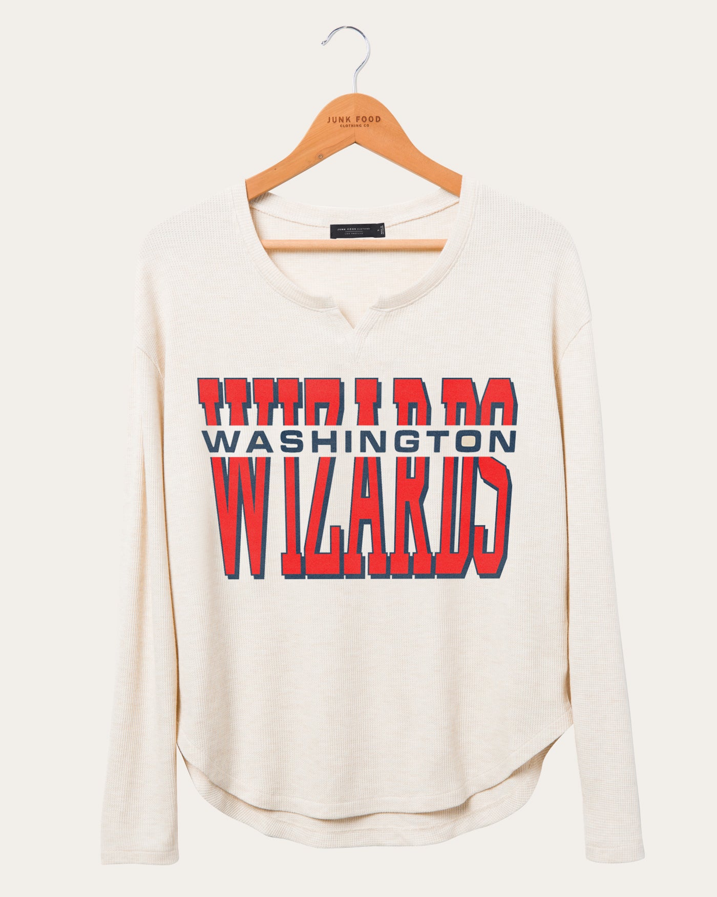 Step up your fandom with our Women's NBA Washington Wizards Sunday Thermal Long Sleeve! This long sleeve is made from a super soft blend of 68% rayon, 29% polyester, and 3% spandex, with a graphic print on the center of the chest and on the left sleeve hem. This relaxed fit shirt is the ideal shirt for anyone to own.