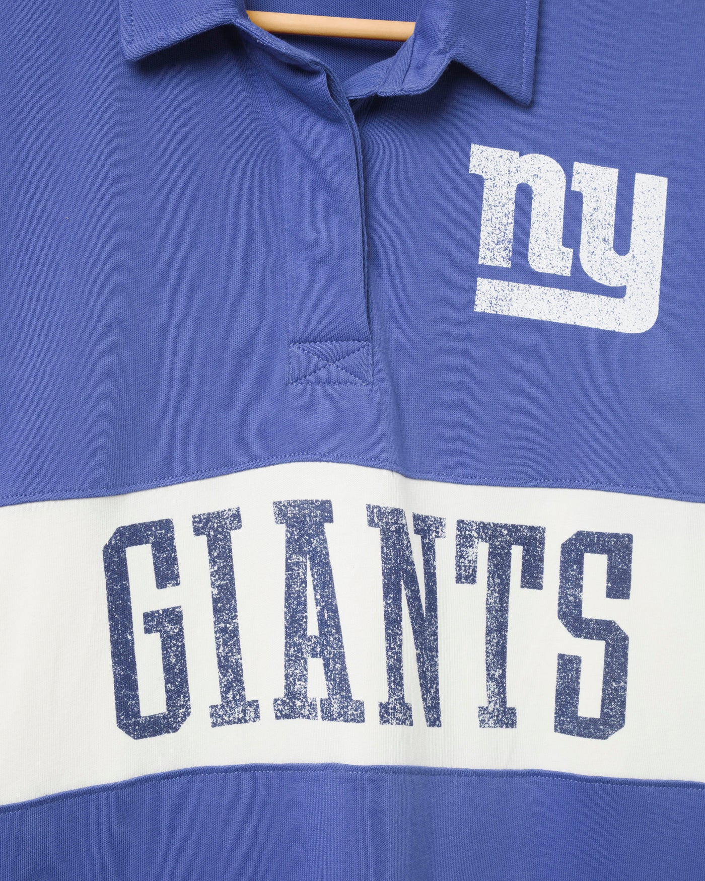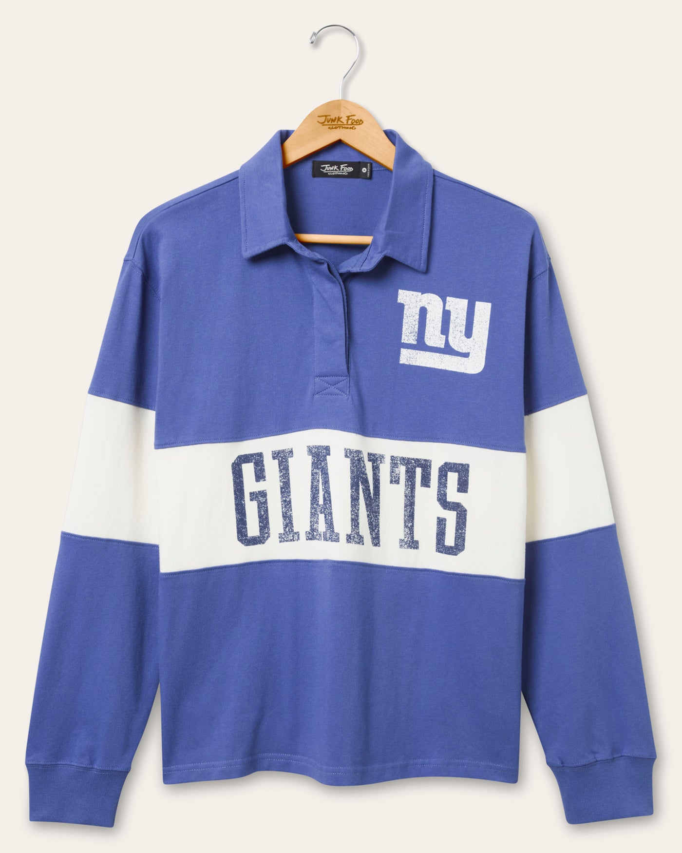 Show your team pride with timeless style in this Women's New York Giants Rugby Long Sleeve. Featuring bold stripes, a classic collar, and Giants across the front, it’s the ultimate blend of vintage vibes and fan spirit. Perfect for chilly game days or casual weekends.