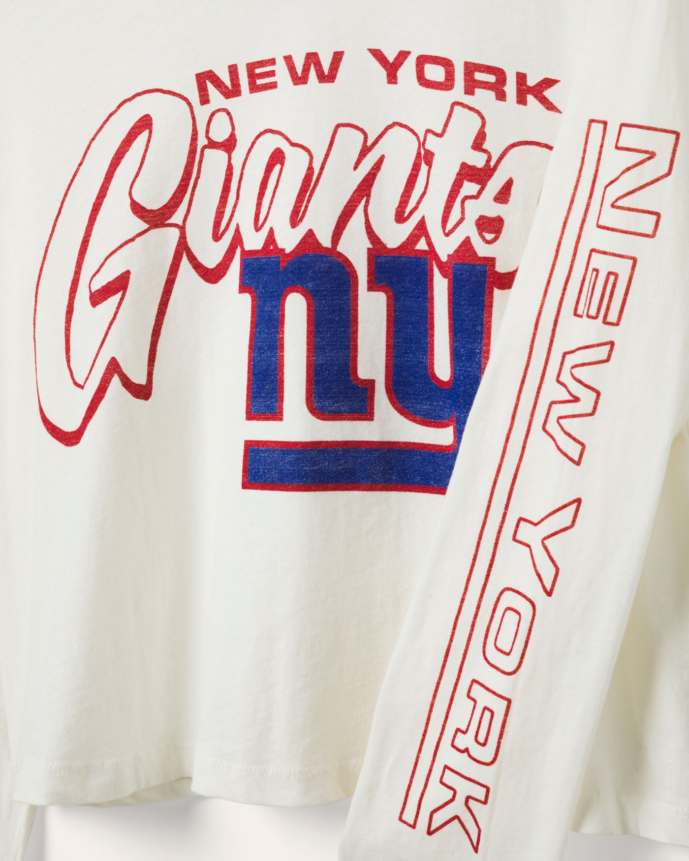 Score big on style with our Women's Giants Touchdown Long Sleeve Crop Tee! This trendy crop top combines comfort and team pride, featuring a bold officially licensed Giants logo. Perfect for game day or casual outings, show off your Giants spirit with flair. Get yours and cheer in style!