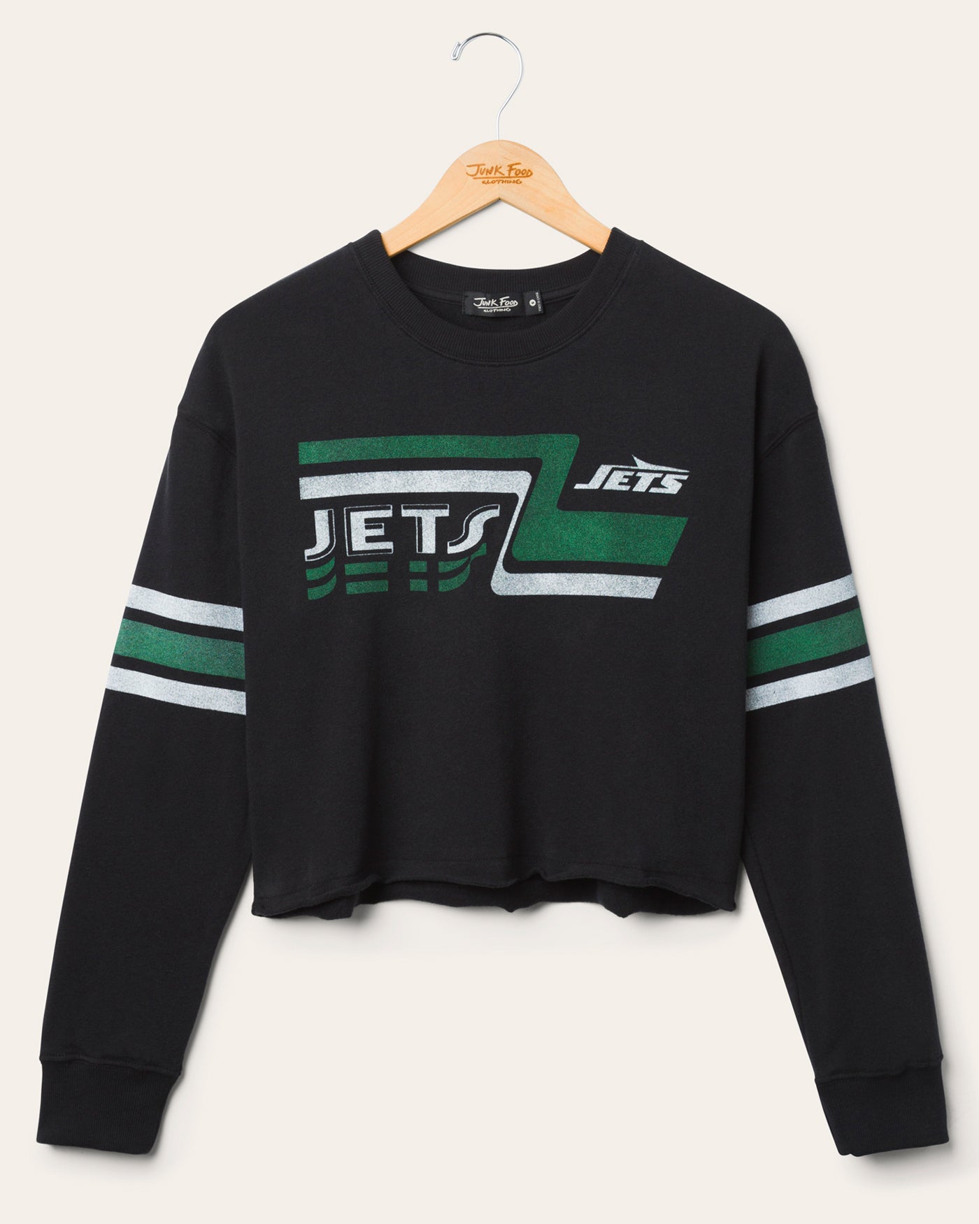 Throw it back in style with the Women's New York Jets Retro Crop Fleece. This cozy, cropped pullover features bold vintage graphics and super soft fleece for that worn in, game day feel. Perfect for fans who love classic Jets flair with a modern twist.