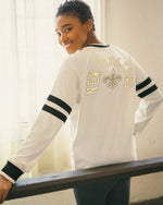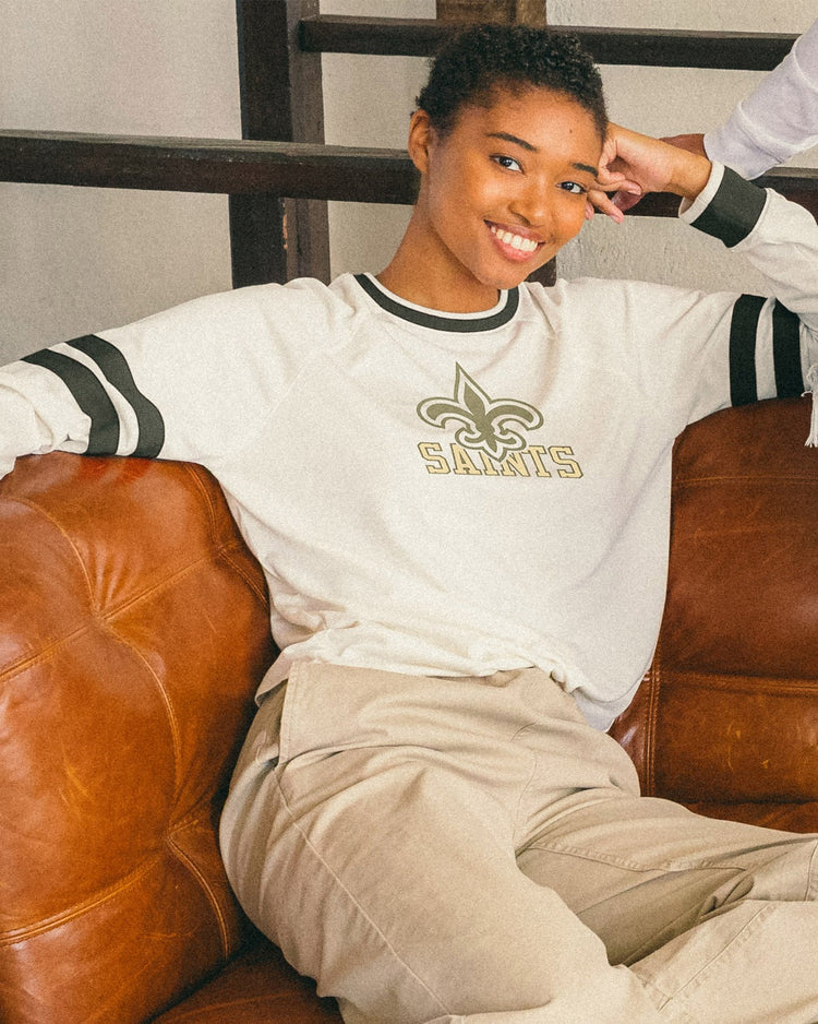 Become a part of the team with our Women's NFL New Orleans Saints Long Sleeve Football Crewneck. Made from our super soft poly/rayon/spandex blend and featuring a graphic print on the front and the back of the crewneck, and contrast sleeve stripes. This crewneck is a perfect addition to your game day outfit rotation.