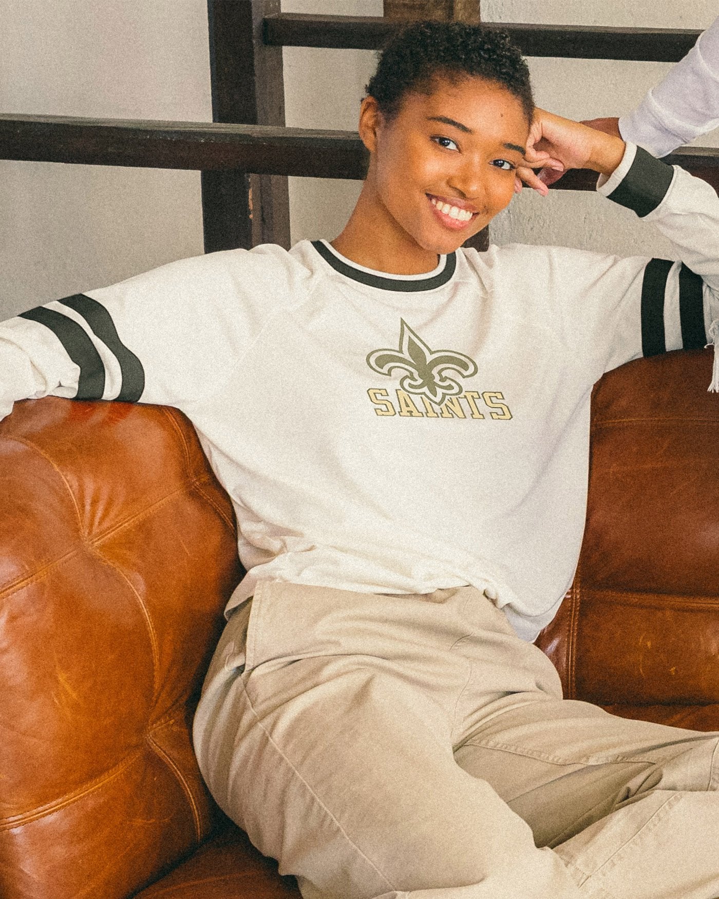 Become a part of the team with our Women's NFL New Orleans Saints Long Sleeve Football Crewneck. Made from our super soft poly/rayon/spandex blend and featuring a graphic print on the front and the back of the crewneck, and contrast sleeve stripes. This crewneck is a perfect addition to your game day outfit rotation.