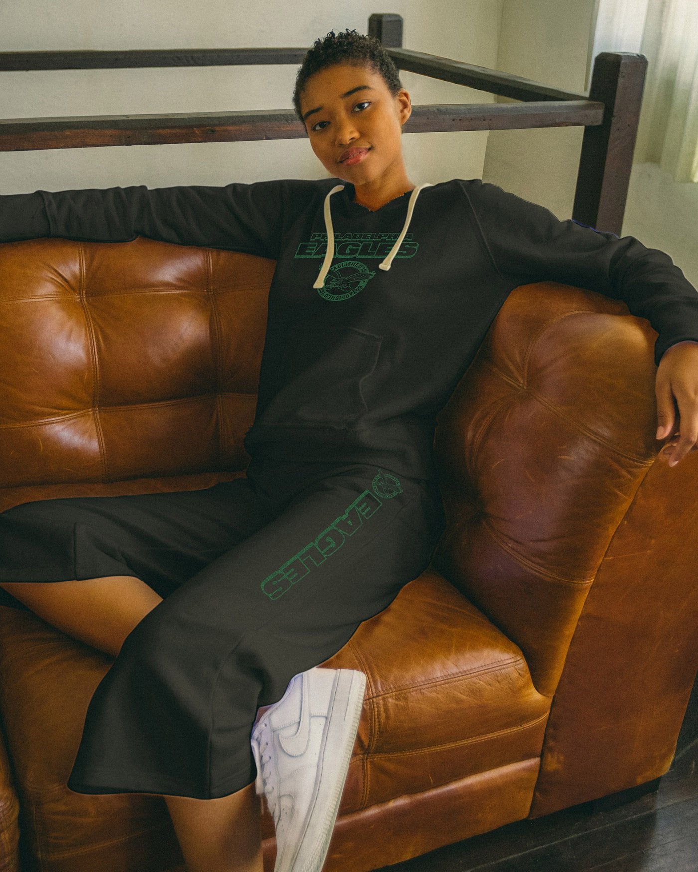 Take a breather in our super comfortable Women's NFL Cropped Pants. Made from a cotton/poly fabric blend, featuring a relaxed fit in the thighs and a slight flare at the hem as well as a graphic logo on the wearers left leg, these pants are the perfect choice to rep your team in style. Go Eagles!