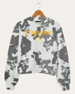 Rep your team in our NFL Tie Dye Mock Neck Long Sleeve. This cotton/poly blend fleece features a on-trend tie dye treatment, front and center logo and mock neck. The cropped fit makes this fleece a great pairing with your high-waisted jeans. Make this your new lucky game-day fleece. Go Steelers!