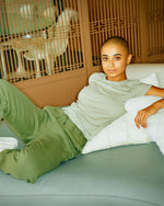 Made in our cozy signature tri-blend jersey, finished with garment dye & softener wash. Featuring a classic crew neck with ladder stitching details & intentionally distressed at the neck, sleeve & hem.