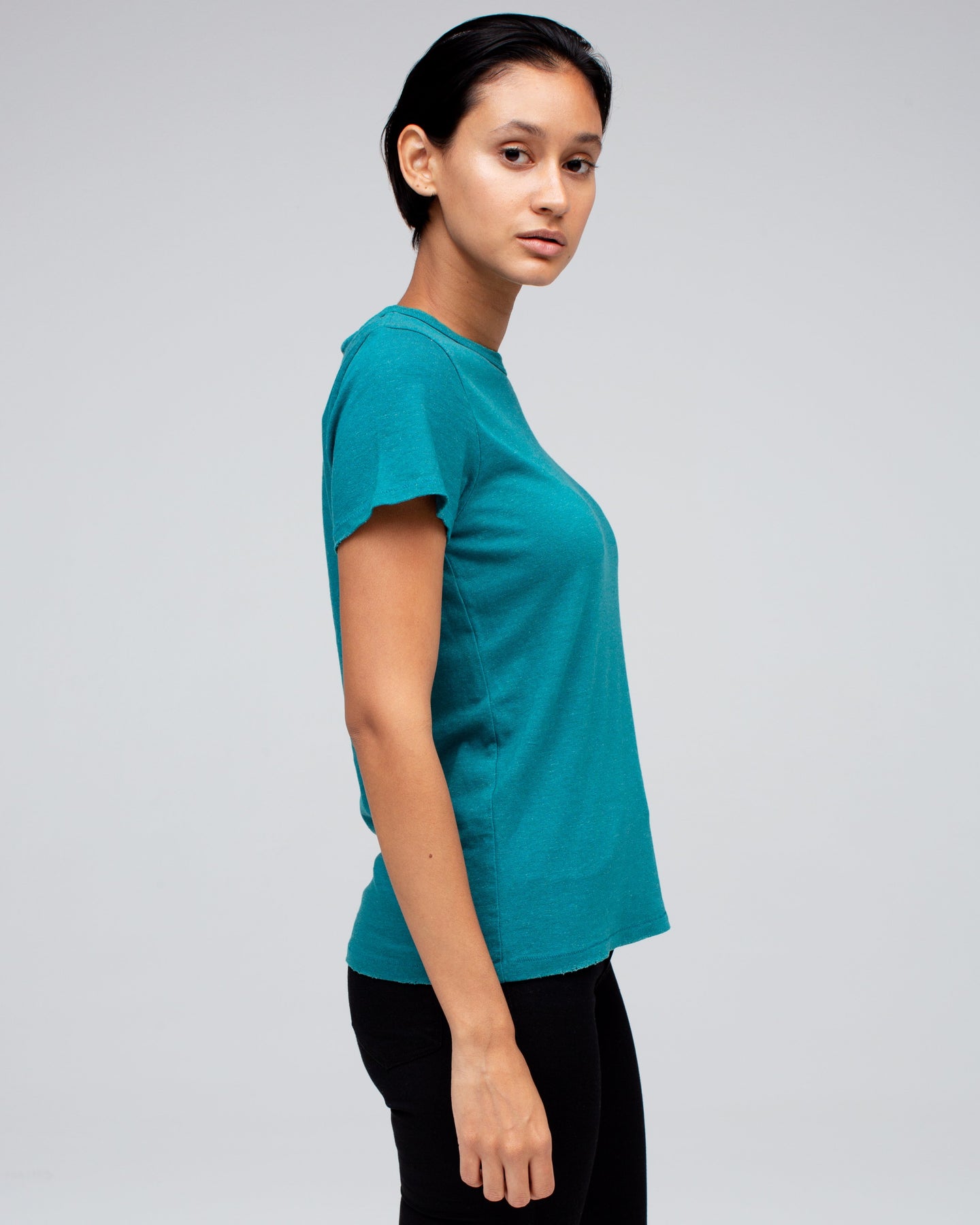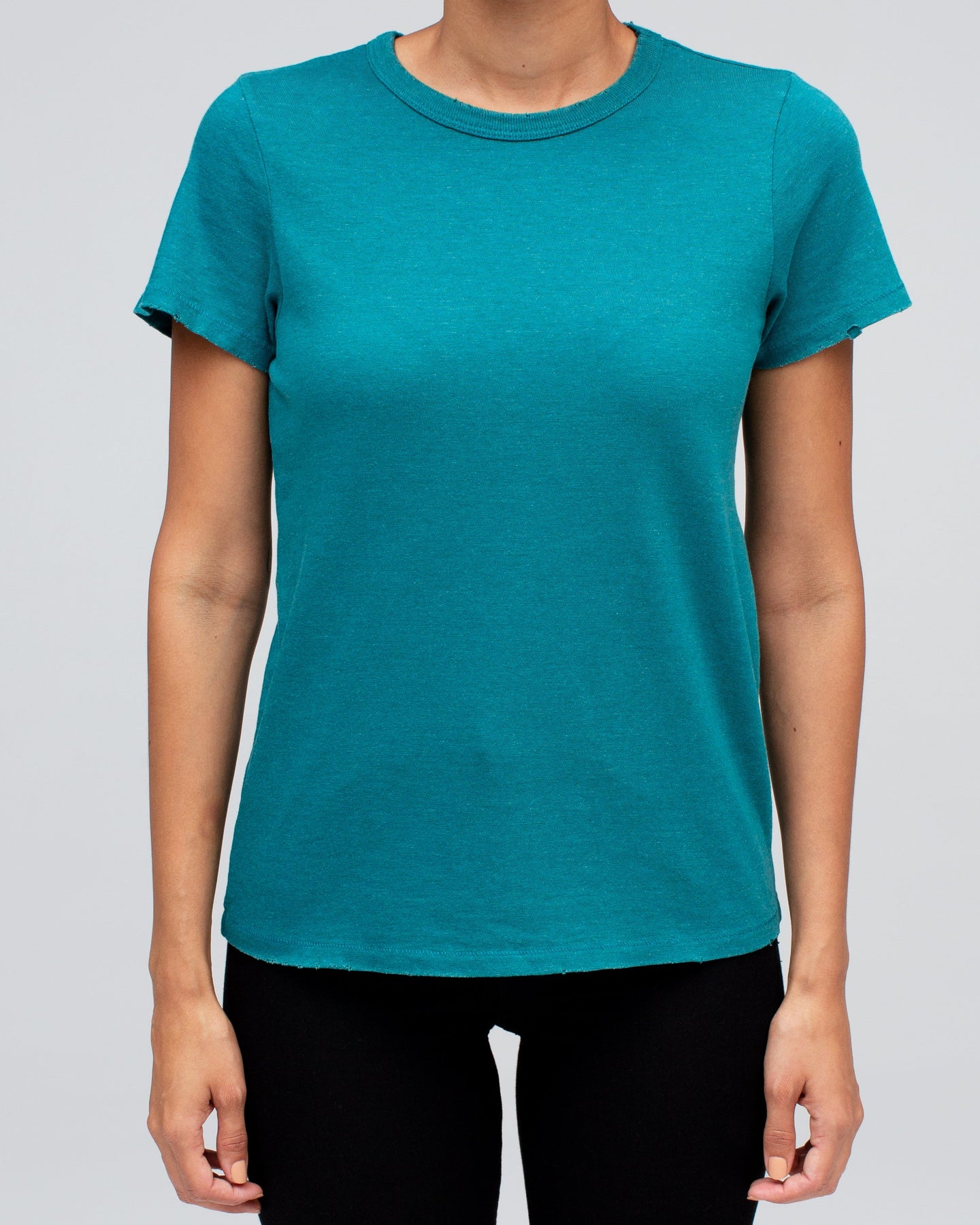 Made in our cozy signature tri-blend jersey, finished with garment dye & softener wash. Featuring a classic crew neck with ladder stitching details & intentionally distressed at the neck, sleeve & hem.