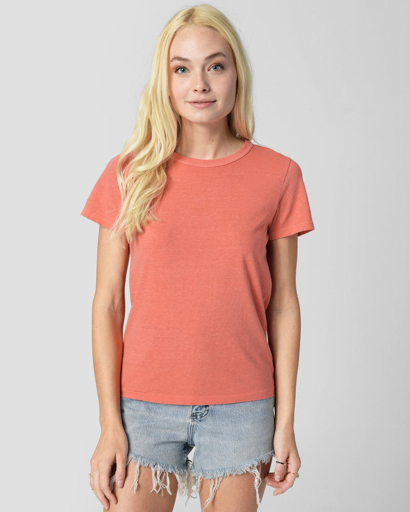 Made in our cozy signature tri-blend jersey, finished with garment dye & softener wash. Featuring a classic crew neck with ladder stitching details & intentionally distressed at the neck, sleeve & hem.