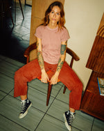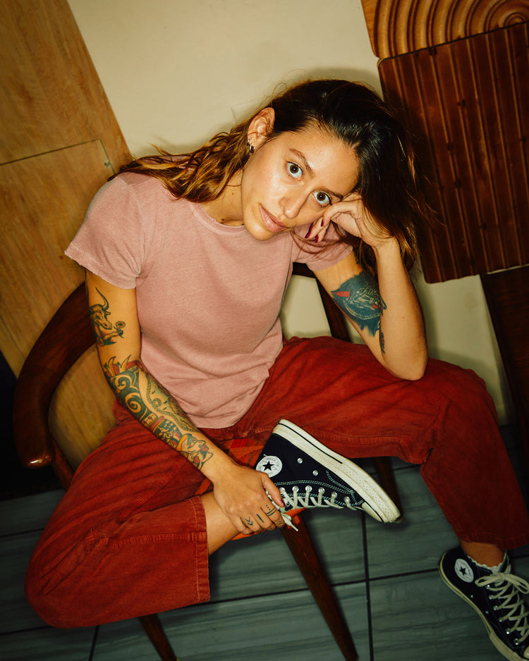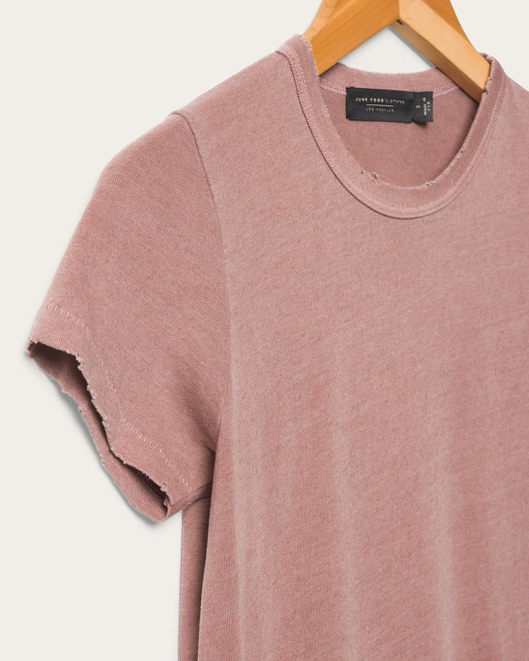 Made in our cozy signature tri-blend jersey, finished with garment dye & softener wash. Featuring a classic crew neck with ladder stitching details & intentionally distressed at the neck, sleeve & hem.